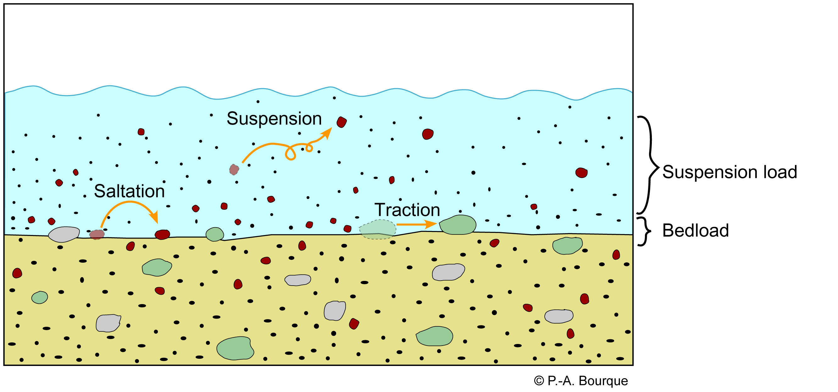 The portion of the stream load that is carried along the bed by mechanisms such as slipping and rolling.