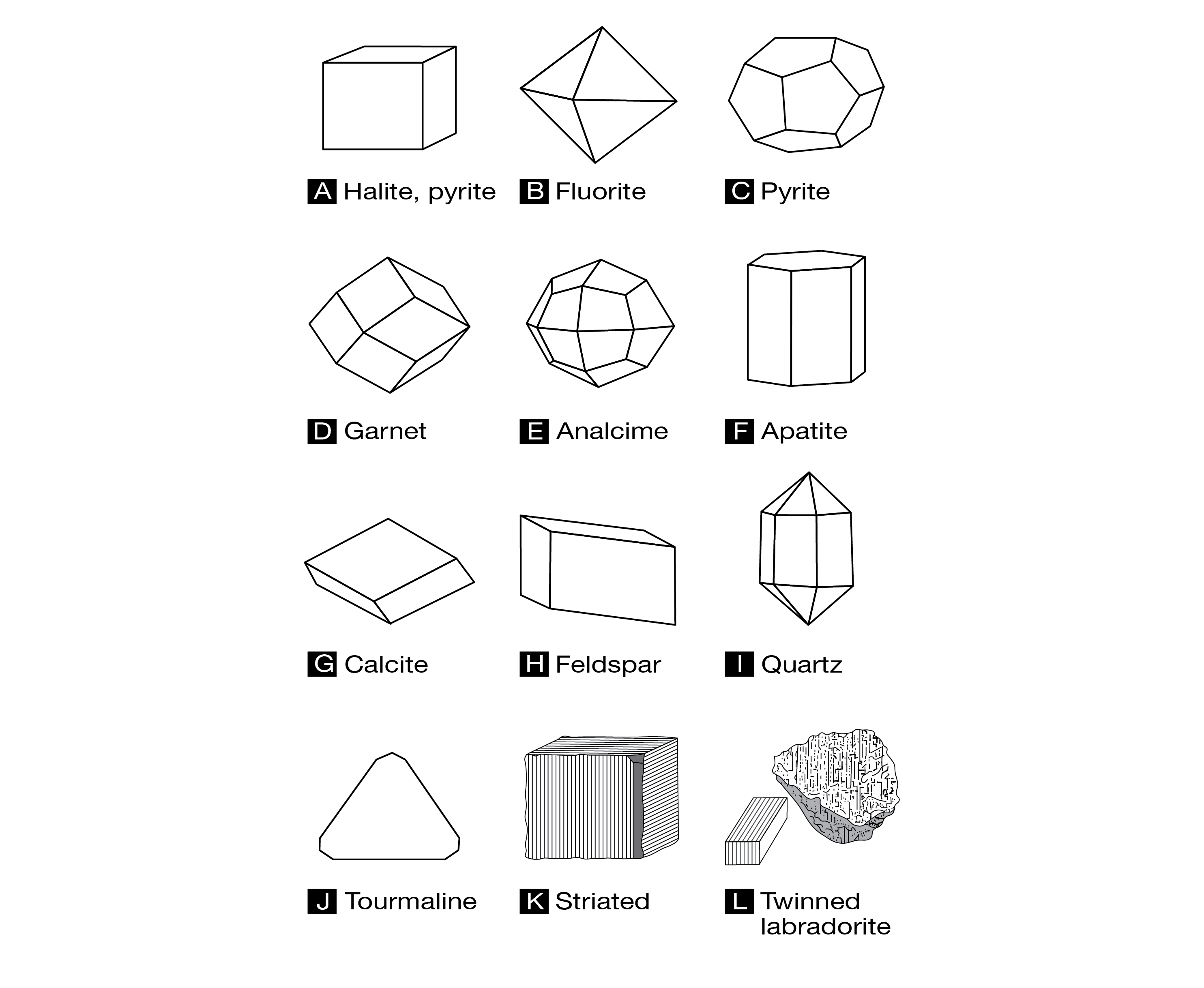 The shape in which a mineral’s individual crystals or aggregates of crystals grow. For example, certain mineral crystals grow in the form of cubes (halite, pyrite), others in the form of hexagonal prisms (apatite), etc. (adapted from: Grotzinger et al., 2007).