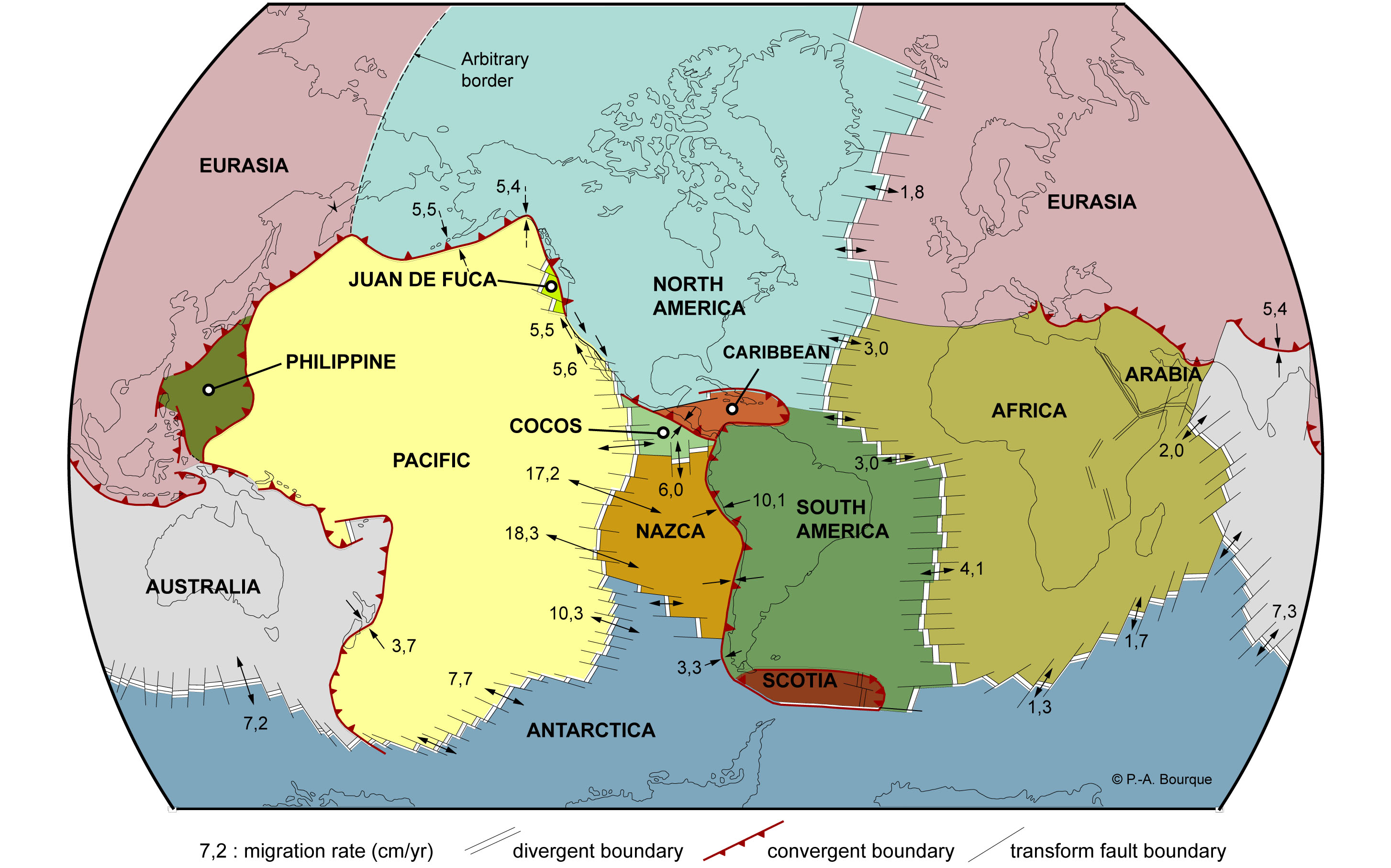 The theory proposing that the lithosphere is broken into about a dozen large plates (and numerous smaller ones) that move over Earth’s surface. Each plate acts as a distinct rigid unit that rides on the asthenosphere, which also is in motion. The theory attempts to explain seismicity, volcanism, mountain building, and evidence of paleomagnetism in terms of these plate motions (adapted from: Grotzinger et al., 2007).