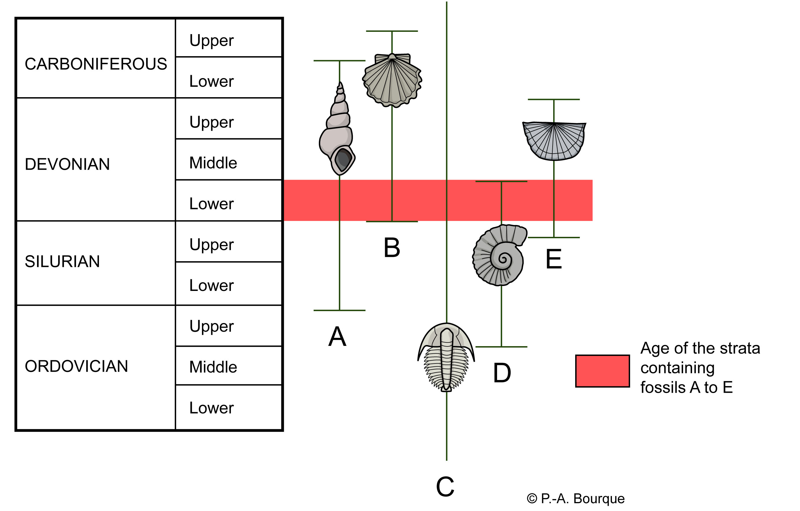 A group of fossils that occur at the same stratigraphic level in a sedimentary rock.