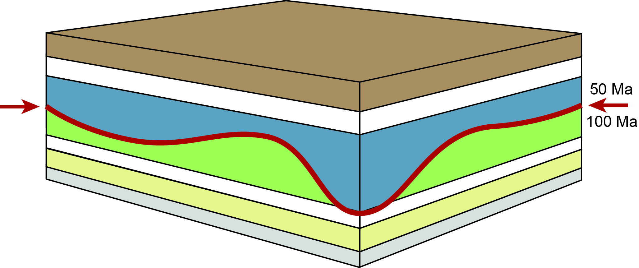 An unconformity in which the strata above and below are parallel to one another, and separated by an irregular surface of erosion.